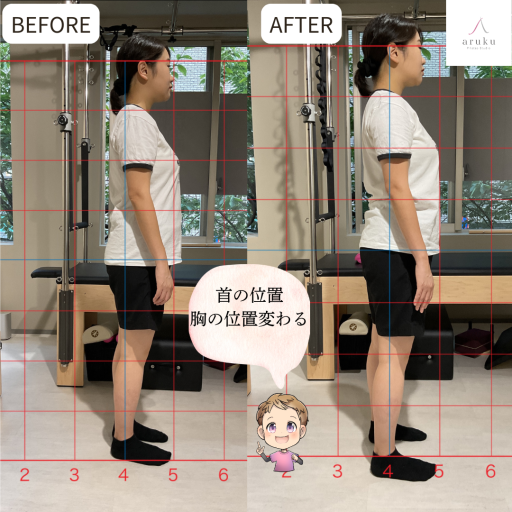 - 首の位置が後方へ改善