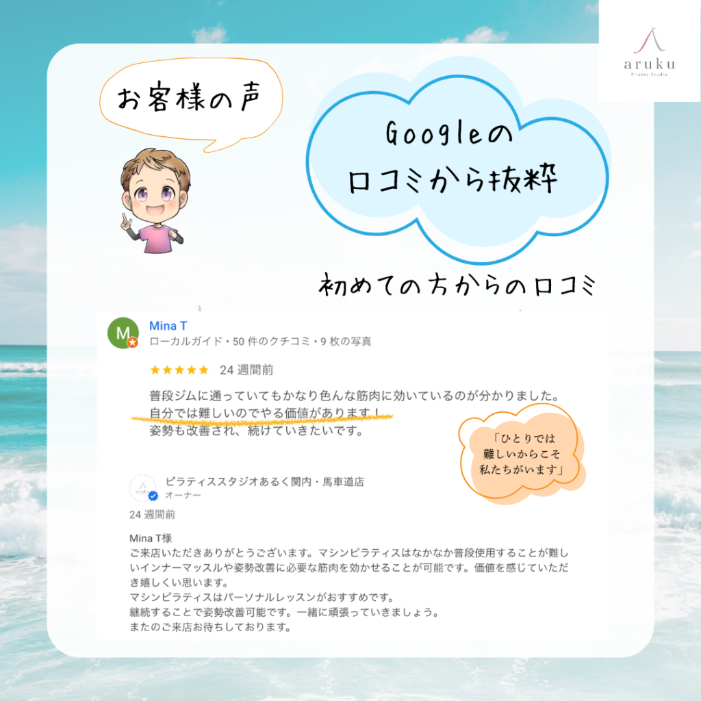 「自分に合った負荷で丁寧に教えていただけて良かったです」