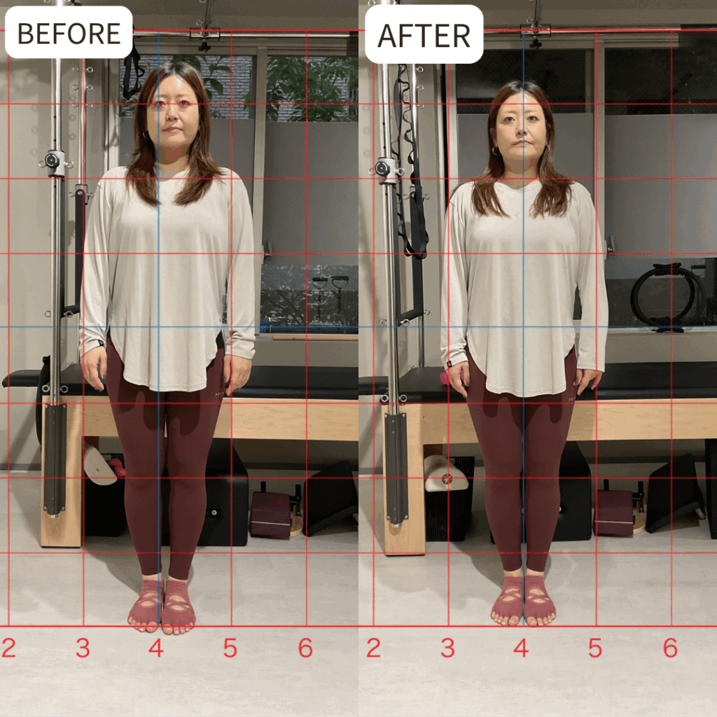 体験レッスン前後での姿勢変化