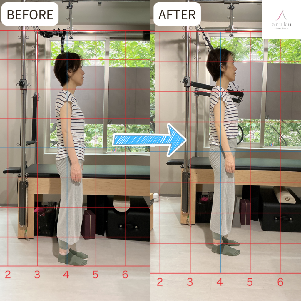 年齢とともに崩れた姿勢・お腹の突き出し・背中の丸みが改善|50代からのマシンピラティスBefore After