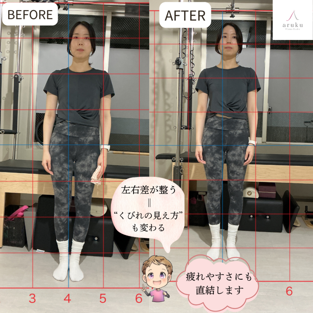 姿勢の崩れは、左右差としても現れます。